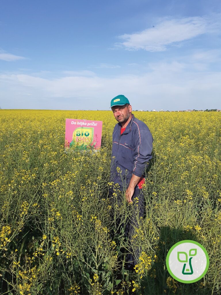 Proizvođač Siniša Marčetić iz Starih Banovaca. Radio tretman uljane repice sa BioEhom u martu. Izuzetno zadovoljan rezultatom Biofor proizvoda pošto je ova uljana repica formirala mnogo više bočnih grana i mahuna i još uvek je u punom cvetu, za razliku od netretiranih koje su odavno završile cvetanje.Slikano 09.05.2020. u Starim Banovcima. BioEho – da biljka priča!