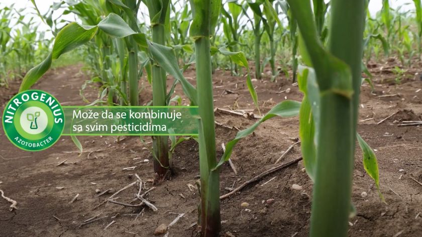 Nitrogenius ima povoljnost da se usvaja i preko lista i zemljišta. Vrlo često mi sa azotom  imamo jednu situaciju jer je azot gost u zemlji, azot beži iz zemljišta. Sva velika količina kiše, velika količina vlage ispira azot. Drugo, zabareno zemljište znači da imate veliku denitrifikaciju, odnosno gubici su isparavanje azota. I dobijemo jednu situaciju da iako smo pođubrili sa đubrivom nemamo dovoljno azota za biljke. I onda imamo problem kao nosioca prinosa, vrlo nezgodnu situaciju nedostatka azota.Ovo je prirodan način, znači bakterija azotofiksatori, konkretno azotobakter preparat je Nitrogenius, da uspe da obezbedi biljci svakim danom lepe količine azota. To je od 40 do 80 kilograma godišnje. To su lepe količine koje mogu da se na ovaj način obezbede.