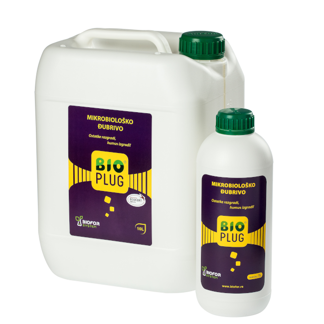 BioPlug je mikrobiološki preparat – tečno mikrobiološko đubrivo u obliku koncentrovanog rastvora, namenjen za razgradnju žetvenih ostataka. Preparat efikasno ubrzava proces humifikacije, pretvarajući žetvene ostatke u kvalitetan humus i tako direktno povećava plodnost zemljišta. Razgradnja žetvenih ostataka pomoću preparata BioPlug omogućava optimalno iskorišćenje organskih materija, čineći zemljište plodnijim i spremnijim za narednu setvenu sezonu. Upotreba ovog preparata je ključna za održivu poljoprivredu i poljoprivrednici mogu očekivati povećanje plodnosti zemljišta, samim tim veće i stabilnije prinose. Kontinuiranom primenom BioPluga (svake godine) povećava se količina humusa u zemljištu. BioPlug je neizostavni deo BTZ tehnologije.
